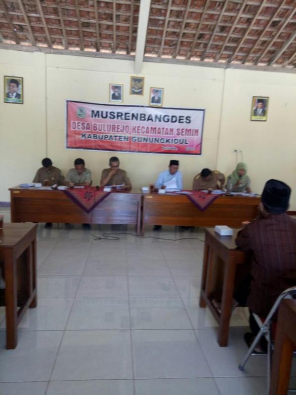 Dalam merencanakan program kerja yang akan dilaksanakan pada 2018, pemerintah Desa Bulurejo telah menyusun rancangan RKPDes 2018 dan pada 7 Agustus 2017 telah dilaksanakan acara Musrengbangdes dalam rangka menyusun skala prioritas kegiatan yang akan dituangkan dalam RKP 2018. Acara yang dilaksankan di Balai Desa Bulurejo dihadiri oleh 70 peserta dari berbagai kalangan yaitu Pemerintah Desa, BPD, Lembaga Desa (LPMD, RT/ RW, PKK & Karang Taruna), Tokoh Agama, RTM, Disabilitas dan Tokoh Perempuan. Hadir Pula sebagai nara sumber Bp Kawit, Bp Sulis, BP Eko dari Kecamatan semin selaku wakil pemerintah daerah.