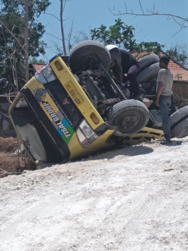 TRUK MUATAN MATERIAL TERGULING